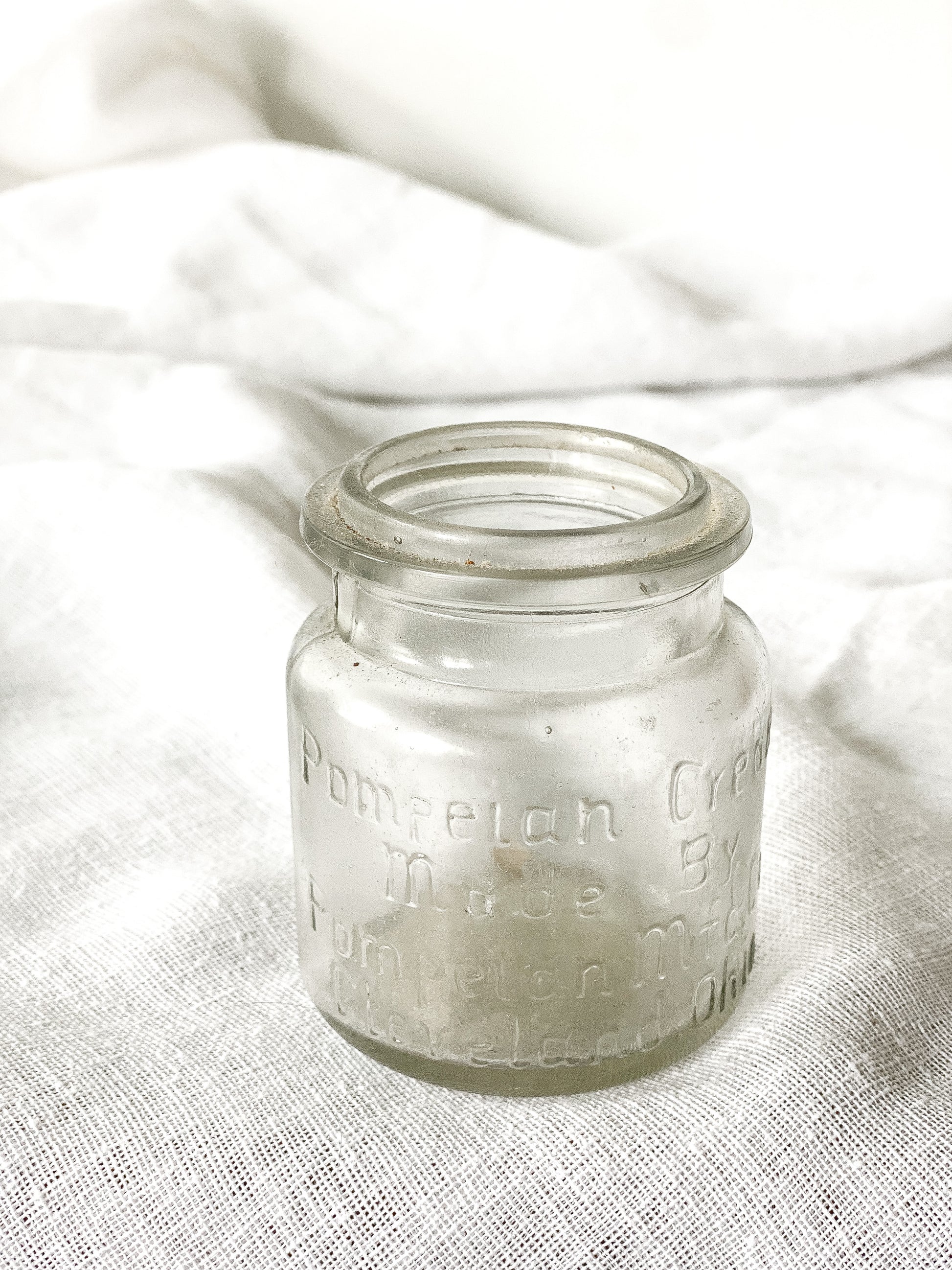 Antique cream jar. Great collectible for glass jar and bottle collections. Measures 3 1/2” tall.