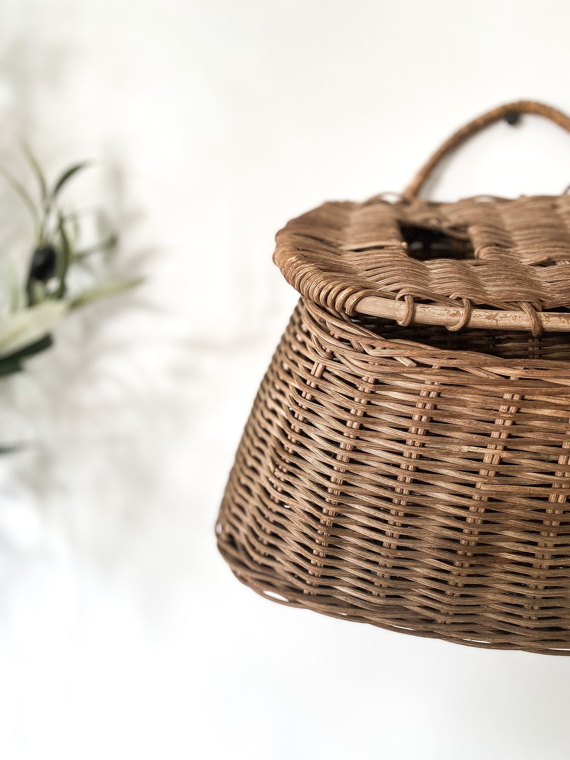 Sweet antique creel fishing basket. This would be be perfect for fall decor; Display with some fall floral and viola!