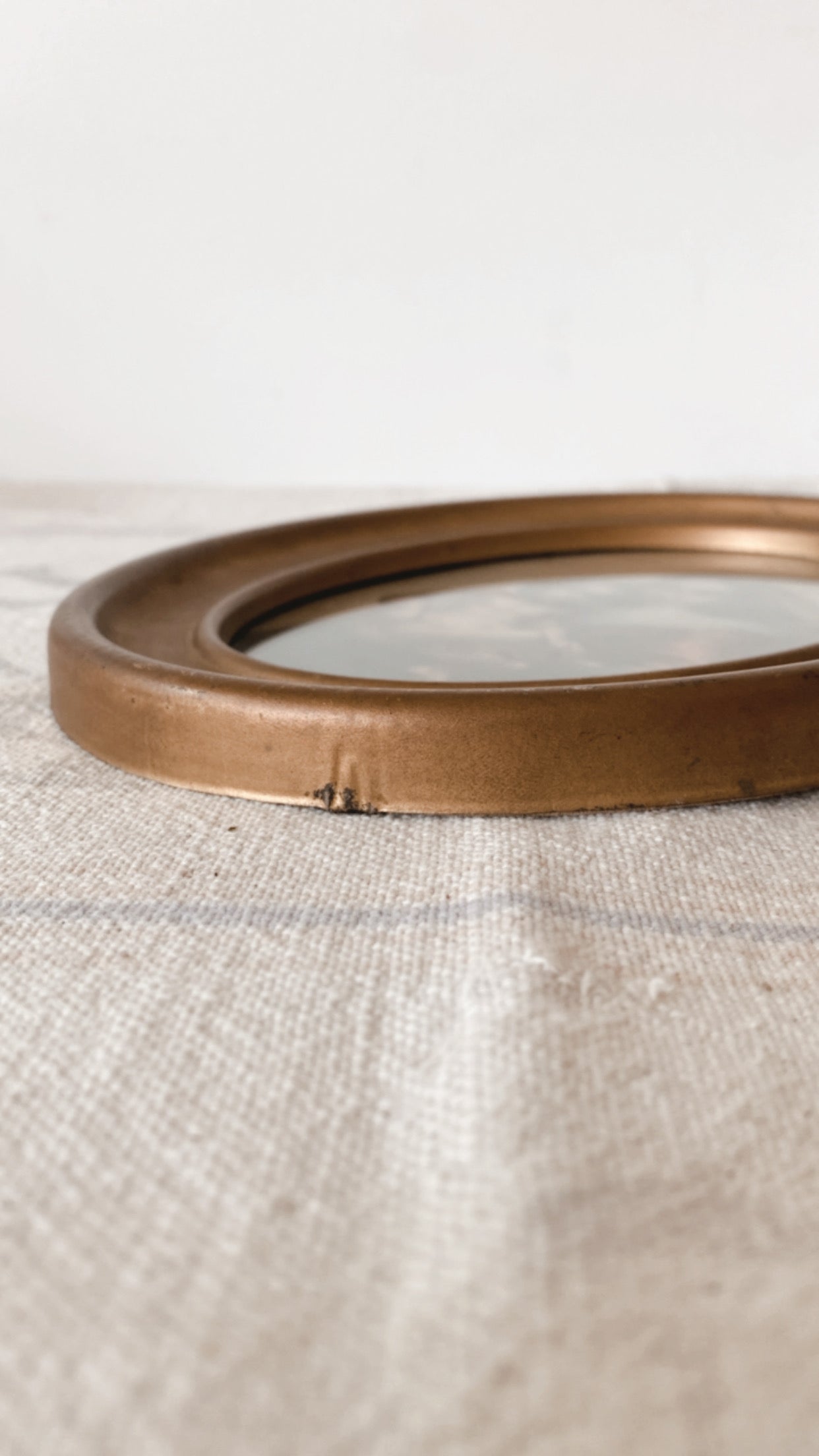 Antique Mother Mary and Baby Jesus Framed Photo. Frame is a gold painted metal. Measures 8 3/4” x 7
