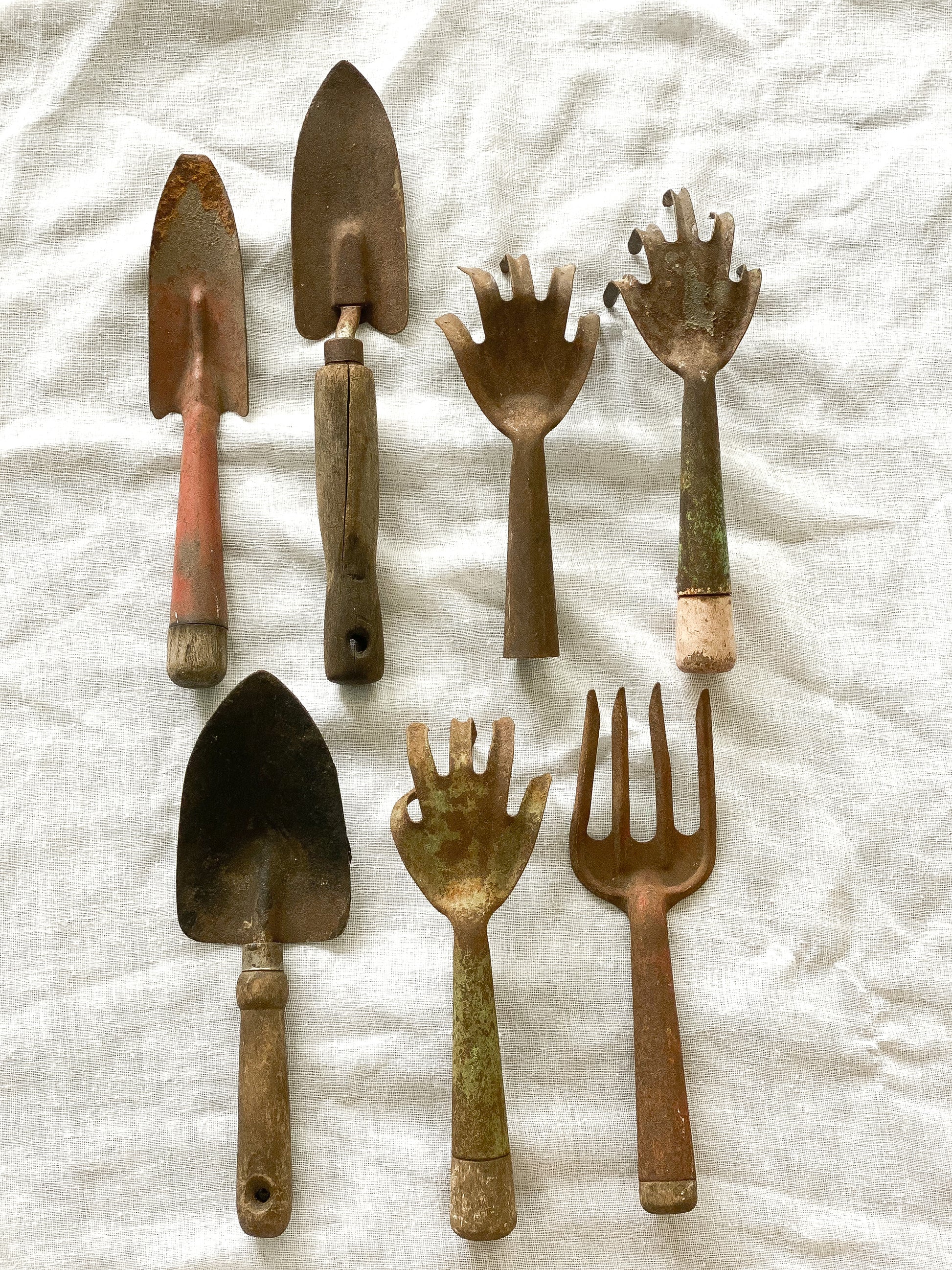Amazing and harder to come by early garden claws, shovels, tools. Comes as a set of 7. (Circa Early 1900’s)
