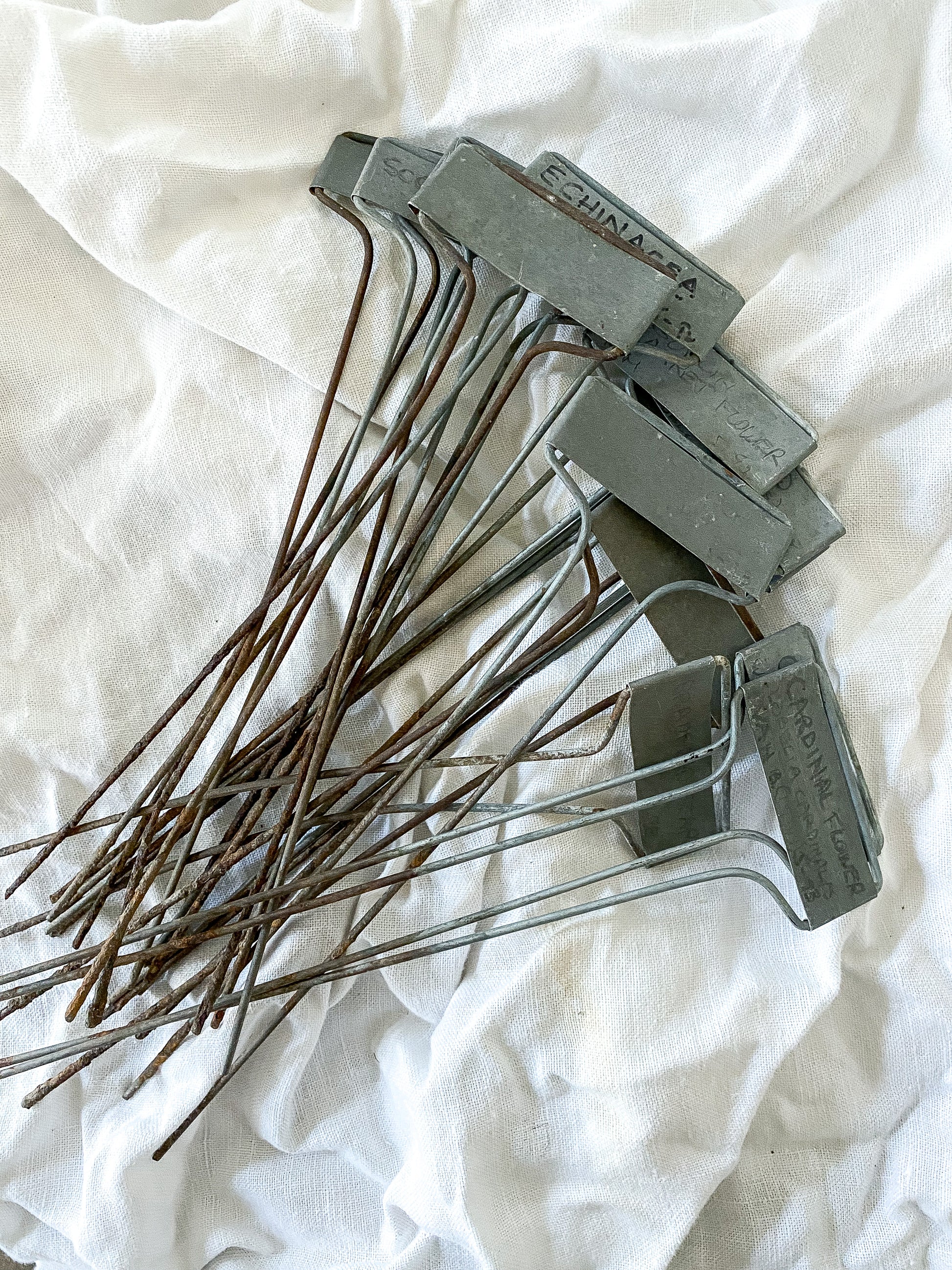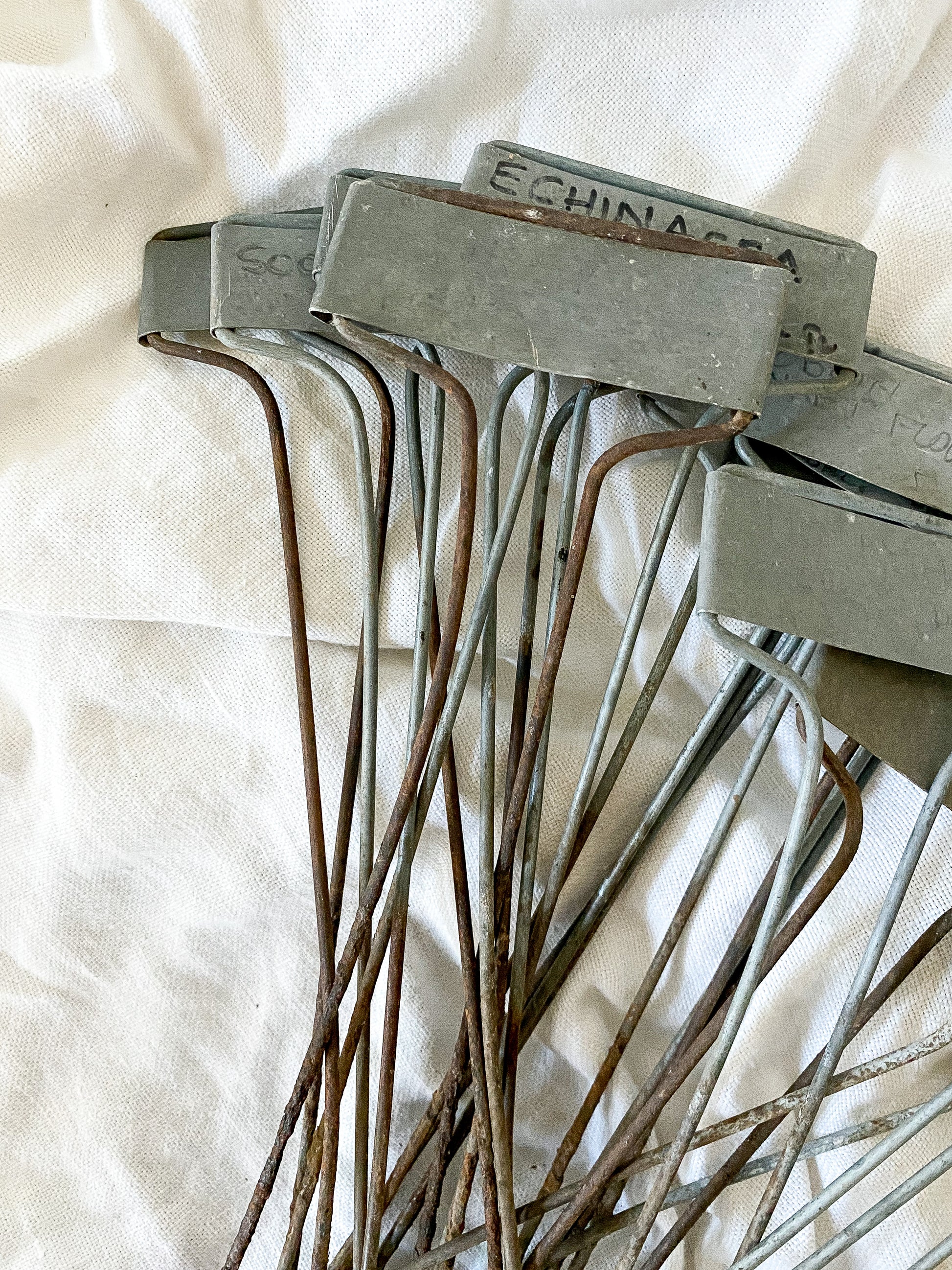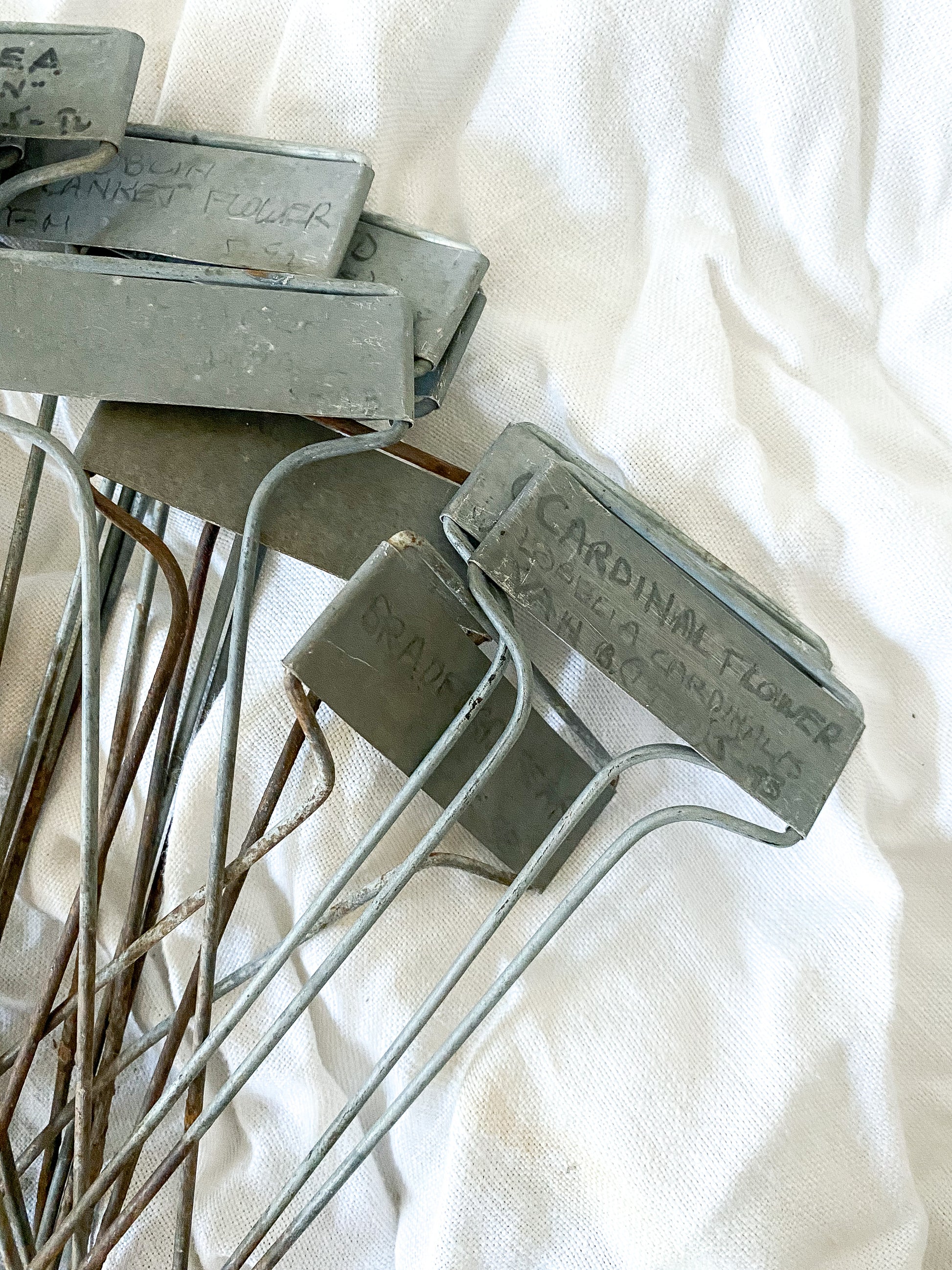 Vintage garden/herb markers. All have plenty of patina. Some are blank and some have hand writing on them. Will be chosen at random. Selling in sets of 5. Multiple sets available