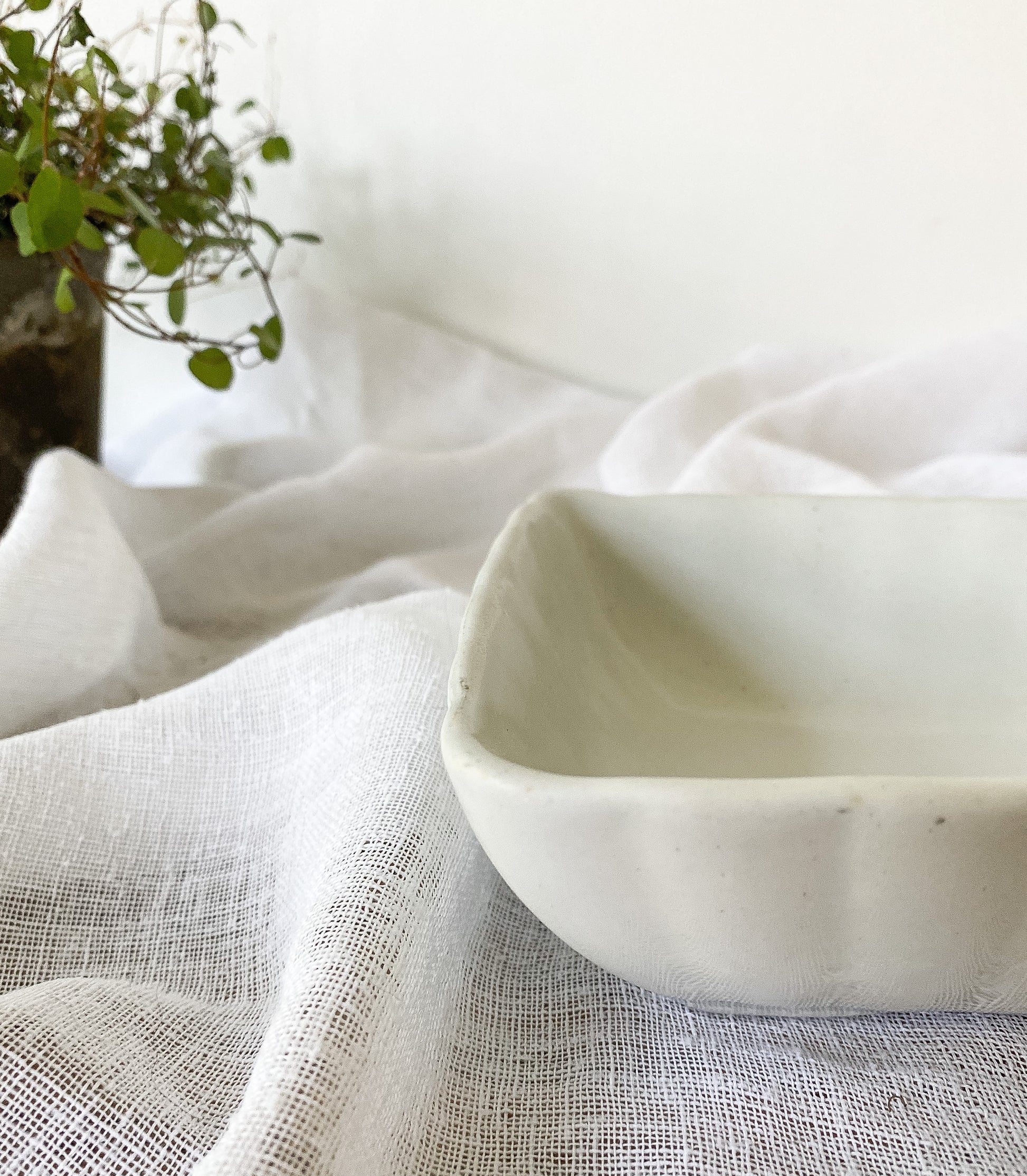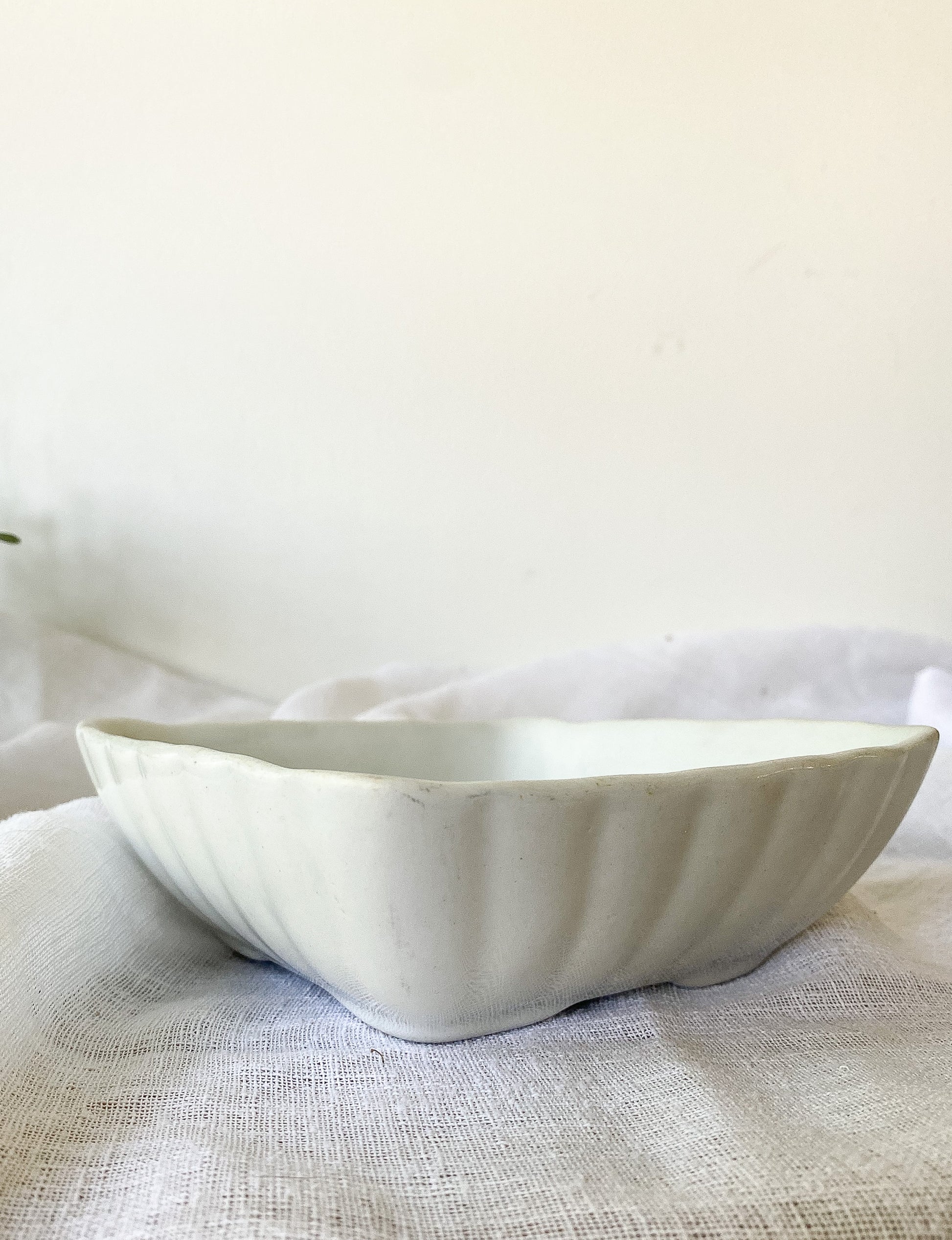 Small sweet Ironstone Ladyfinger bowl. Measures 6” in diameter by 2” tall.