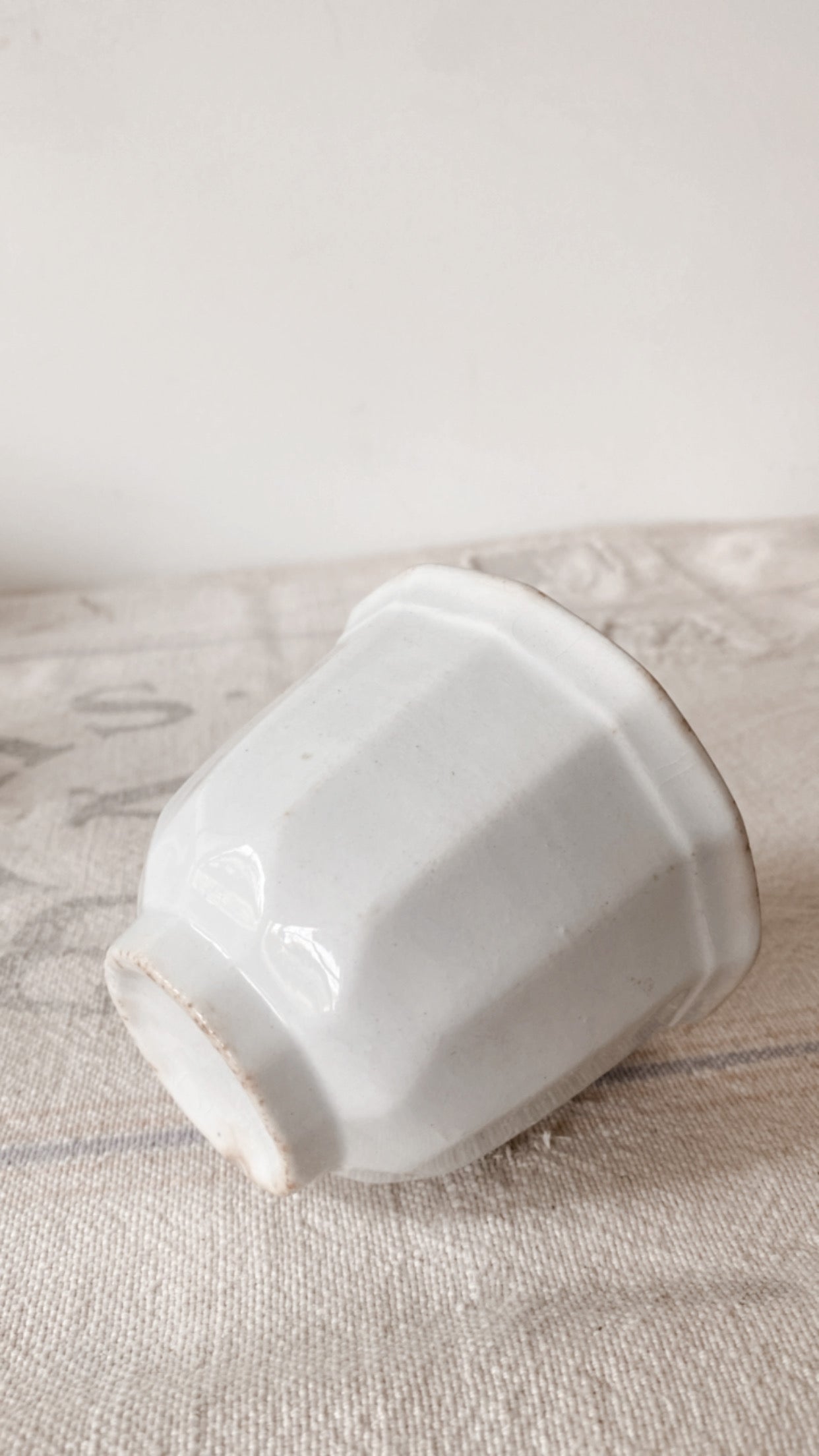 Ironstone watchman/handless mug collection. C 19th century. Stunning patina. Measures 3 1/2” tall.
