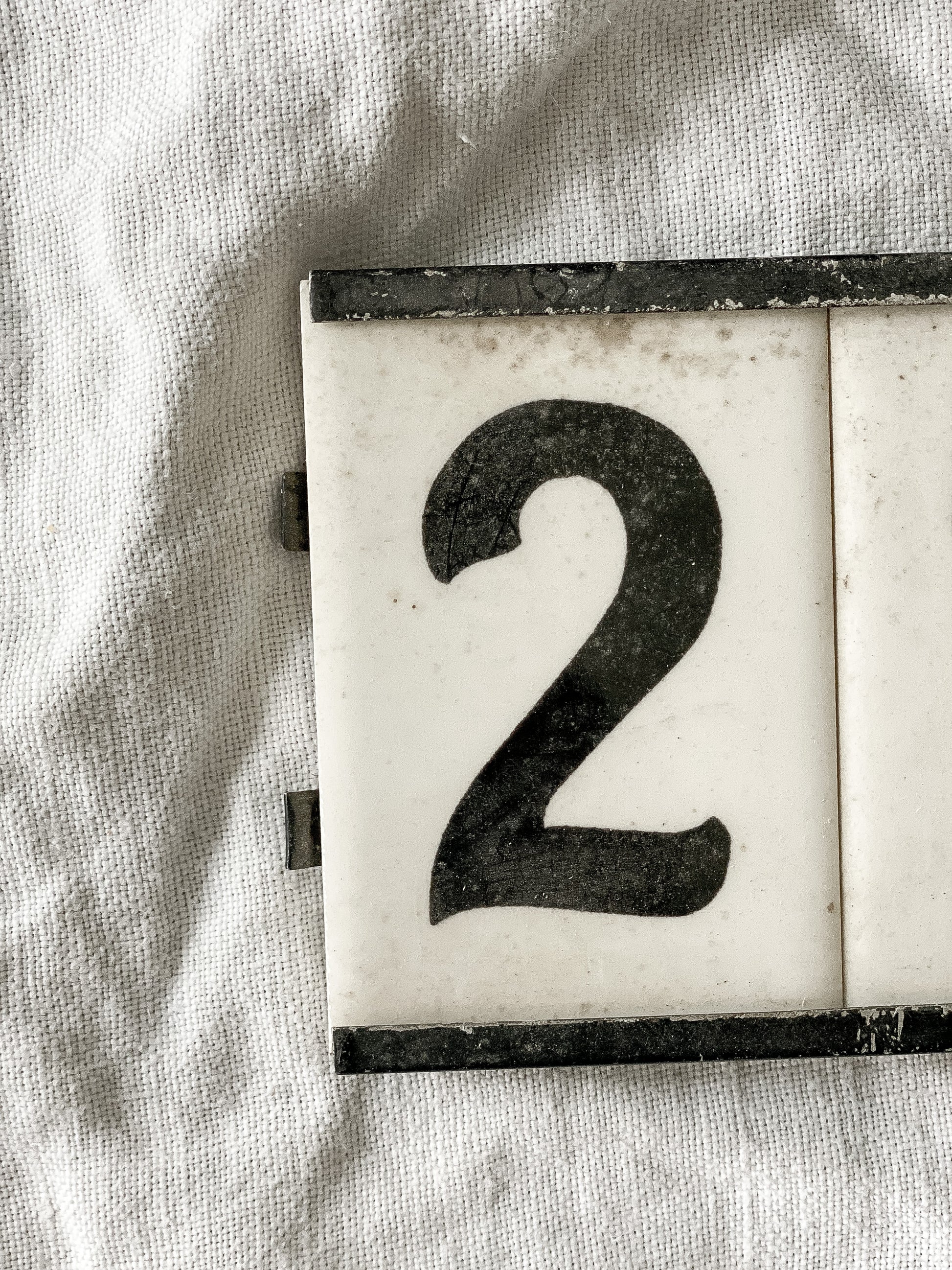 Set of 3 vintage porcelain house numbers. Lovely to add to vignettes.