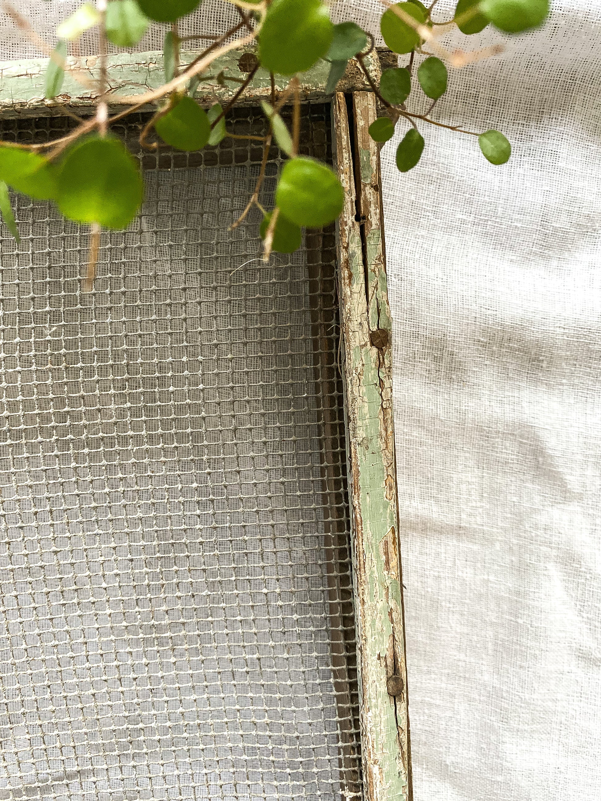 Carefully handmade farm sieve sifter. Has the most amazing chippy paint finish.