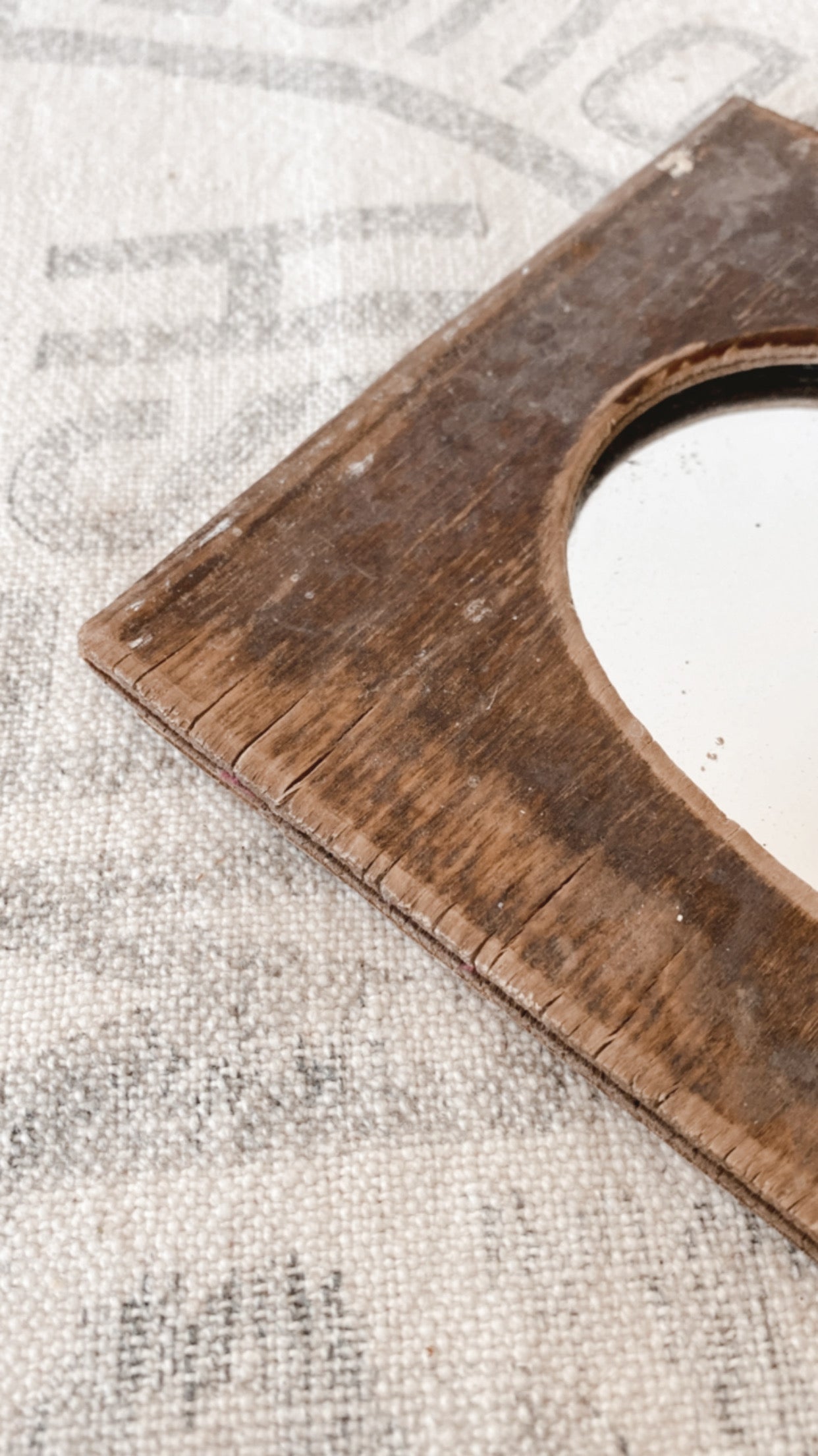 Stunning chippy primitive mirror. Measures 6 1/2” tall. Simply charming!